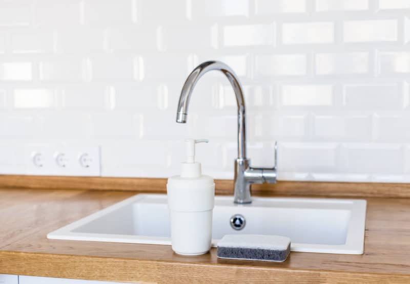Profitez-en pour passer l’éponge sur l’ensemble de l’évier. Vous obtiendrez ainsi un nettoyage complet et uniforme.