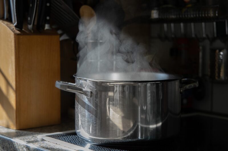 - Placez la cocotte-minute sur le feu et faites bouillir le mélange de lessive de soude et d’eau. La chaleur aidera à décomposer les résidus incrustés, rendant le nettoyage beaucoup plus facile.